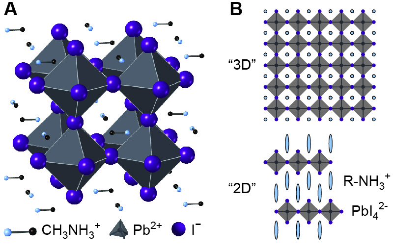 Depending on the size of the organic cation(s), the morphology of the material can be “3D”, “2D”, or